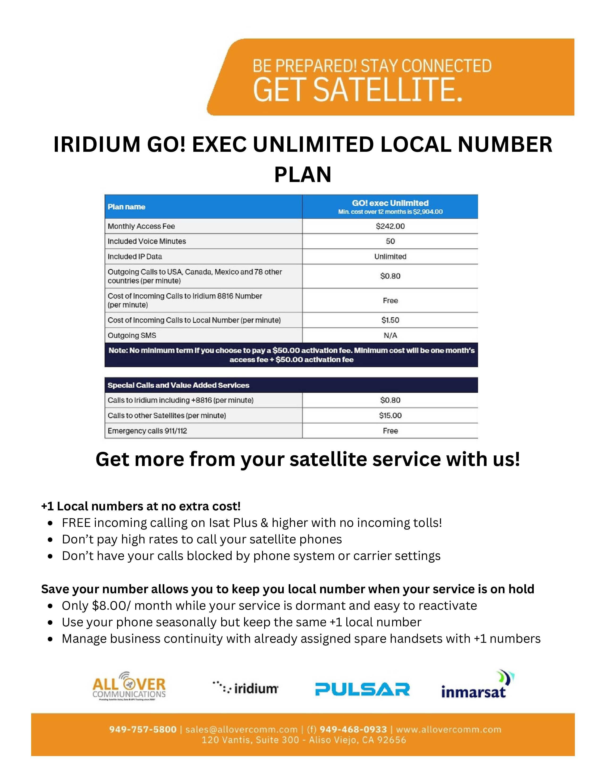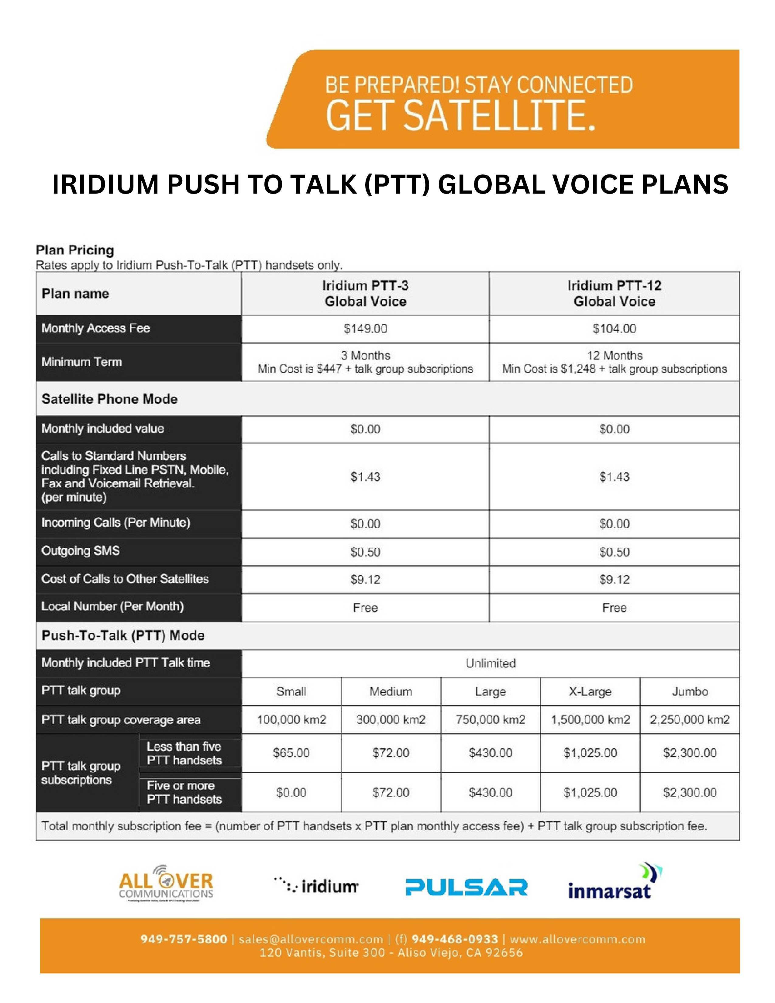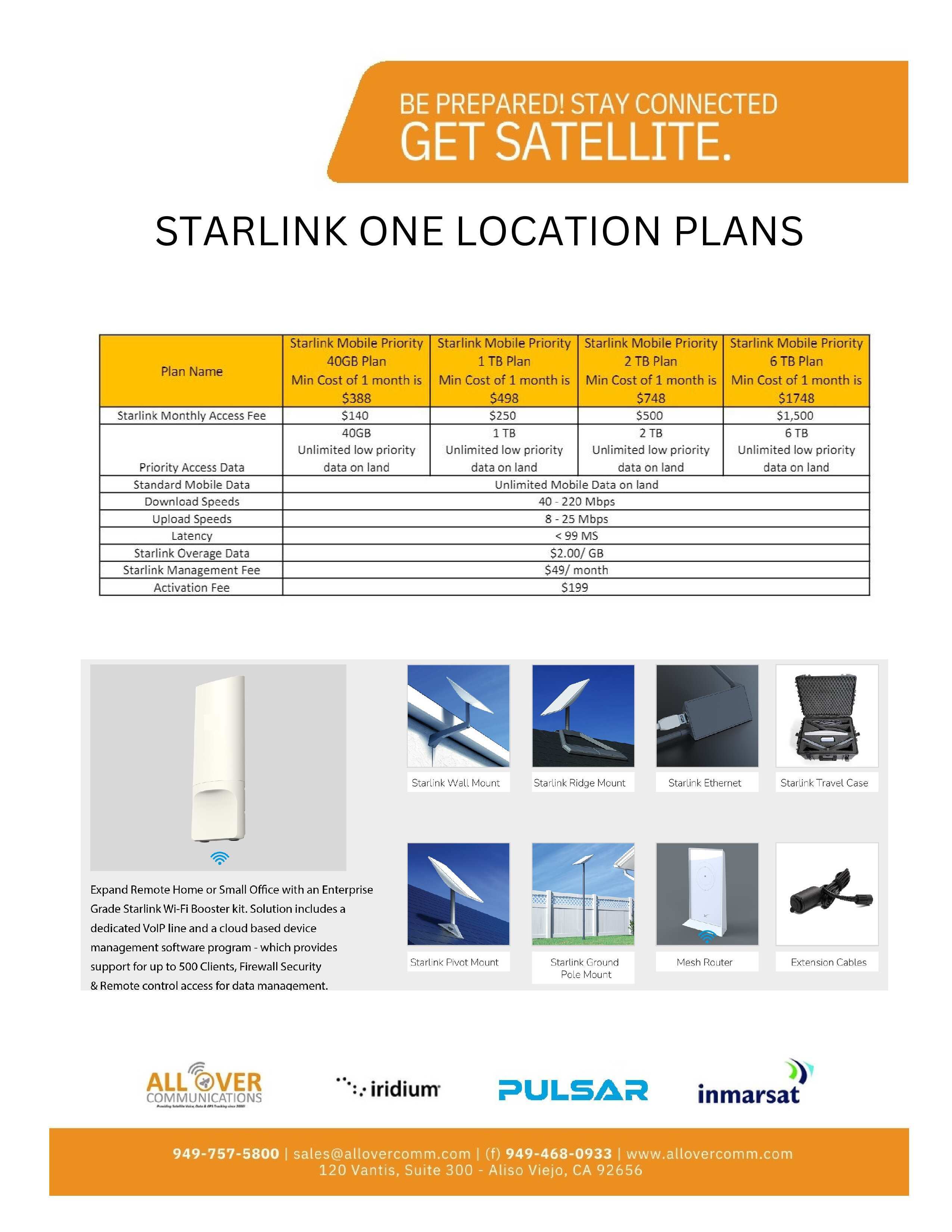 All Over Communications provides airtime billing solutions for several voice & data products. Most devices require SIM cards and we provide them for free with activation. Most plans don't have an activation fee but may require a contract. We offer Iridium voice rate plans, Iridium Certus (data) plans, Iridium Push-to-talk Plans, Inmarsat voice plans, Inmarsat BGAN plans, Inmarsat Fleet Broadband Maritime plans and Starlink Managed Data Plans